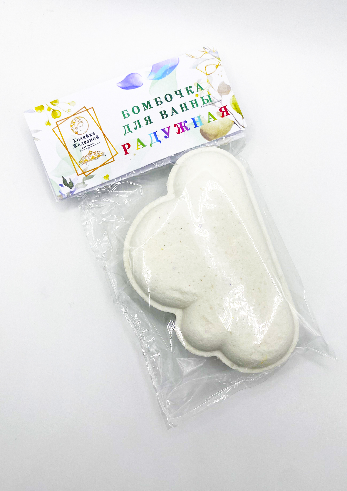 Бомбочка для ванны в виде облачка с радужным растворением в воде порадует и взрослых и детей.