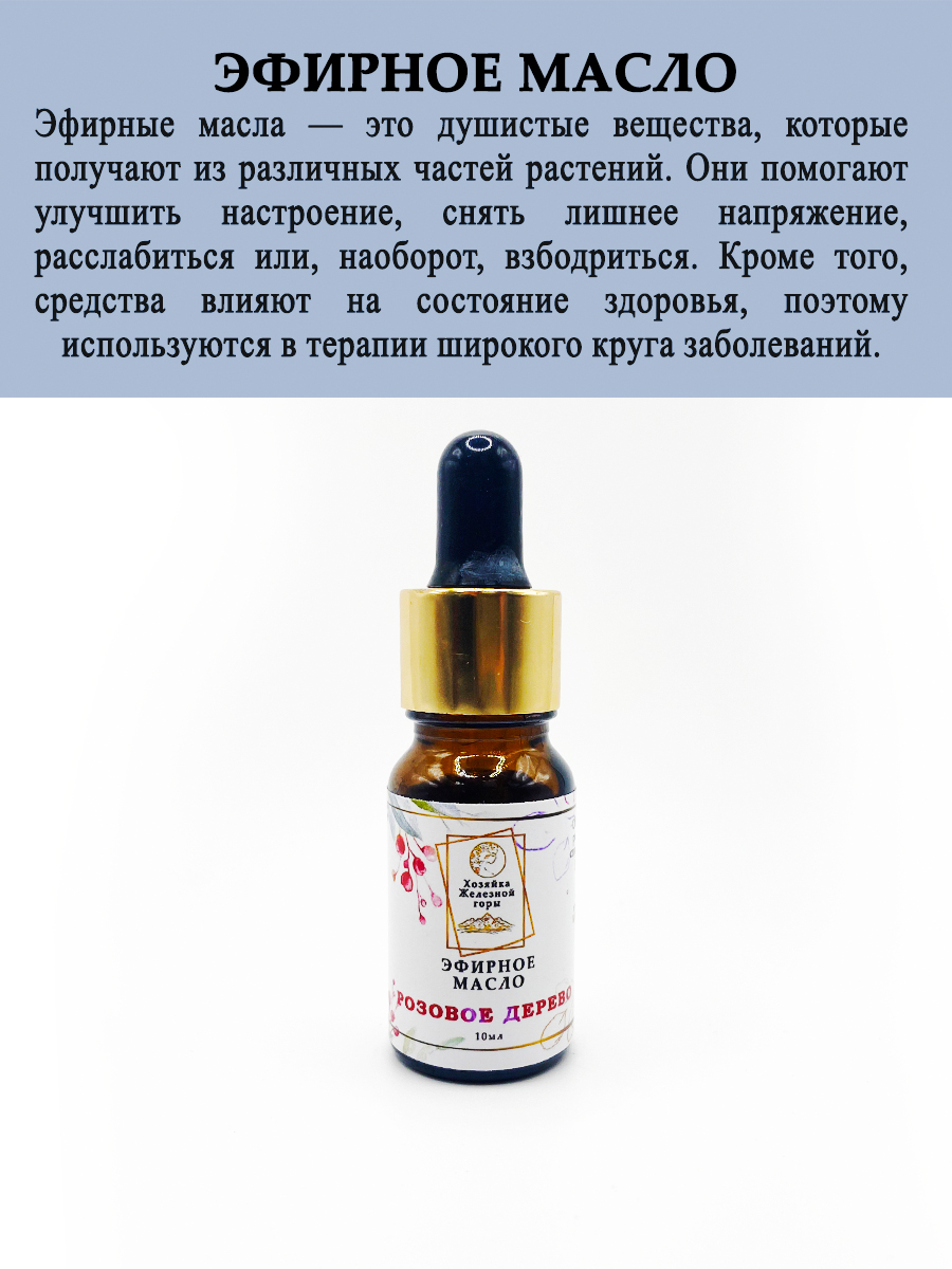 Розовое дерево - обладает успокаивающим и расслабляющим эффектом, способствует снятию стресса и улучшению настроения.