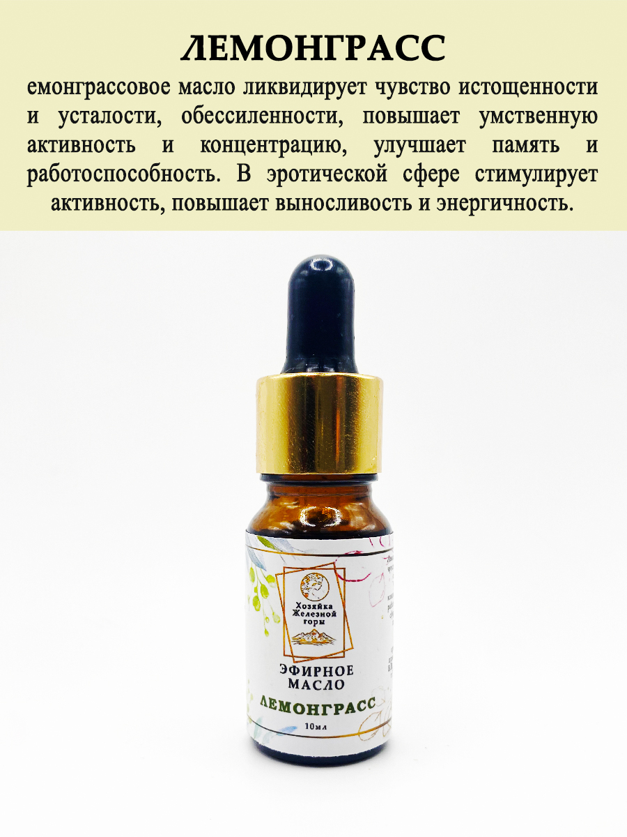 Лемонграсс - лемонграссовое масло ликвидирует чувство истощенности и усталости, обессиленности, повышает умственную активность и концентрацию, улучшает память и работоспособность. В эротической сфере стимулирует активность, повышает выносливость и энергичность.