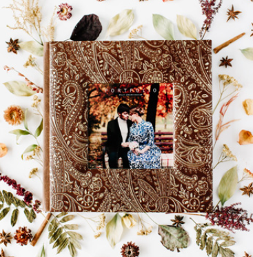Благородная тисненая кожа, блеск декоративных элементов, мягкий кругленный корешок из натуральной кожи — именно из этих деталей складывается уникальный образ фотокниги.