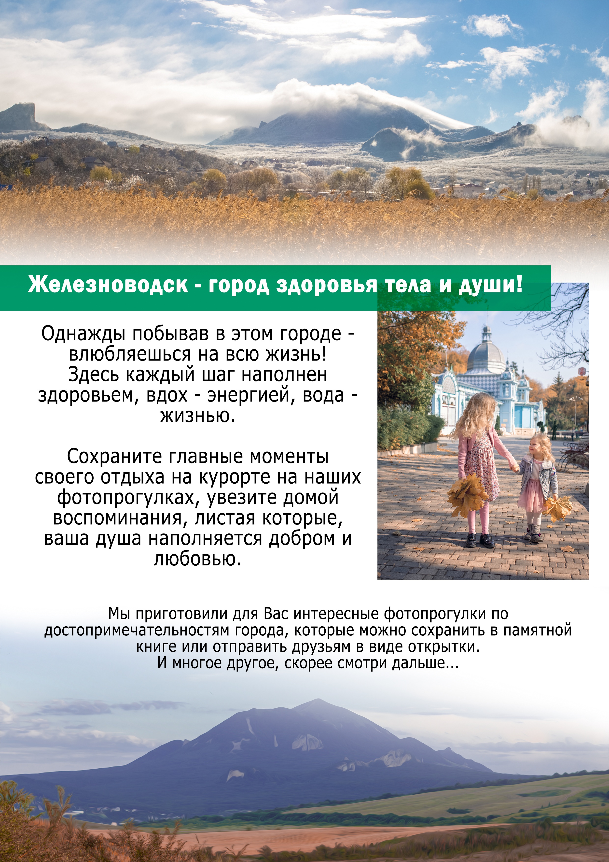 Замечательная возможность познакомиться с достопримечательностями города и сохранить их в воспоминаниях. Фотограф проведет Вас по маршруту, где открываются лучшие виды города, и создаст фотографии вашего отдыха. Вас ждет: - интересный маршрут (осилит даже ребенок) - профессиональный фотограф - отличное настроение - красивые фотографии