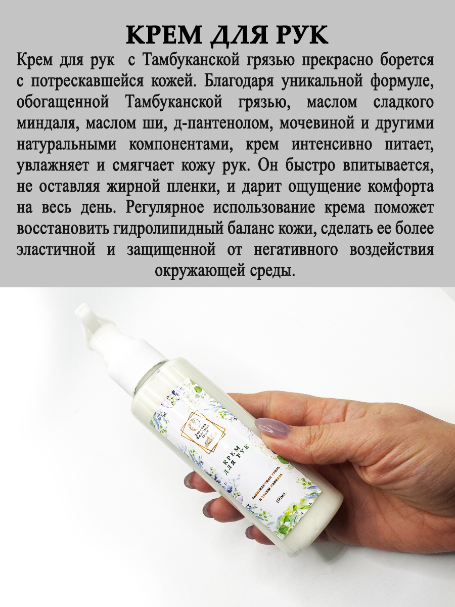 Крем для ног с Тамбуканской грязью и мочевиной - это настоящий спа-уход для ваших ног в домашних условиях. Богатый состав крема, включающий в себя ценную Тамбуканскую грязь, мочевину, масла сладкого миндаля, рисовых отрубей, ши и облепихи, а также экстракт розмарина, глубоко питает и увлажняет кожу, восстанавливая ее естественную мягкость и эластичность. Крем эффективно борется с сухостью, шелушением и трещинами, защищая кожу от негативного воздействия окружающей среды. Легкая текстура крема быстро впитывается, не оставляя жирной пленки, а приятный аромат дарит ощущение свежести. Подходит для всех типов кожи, в том числе для сухой и потрескавшейся. Используйте крем для ног как днем, так и ночью для достижения максимального эффекта.