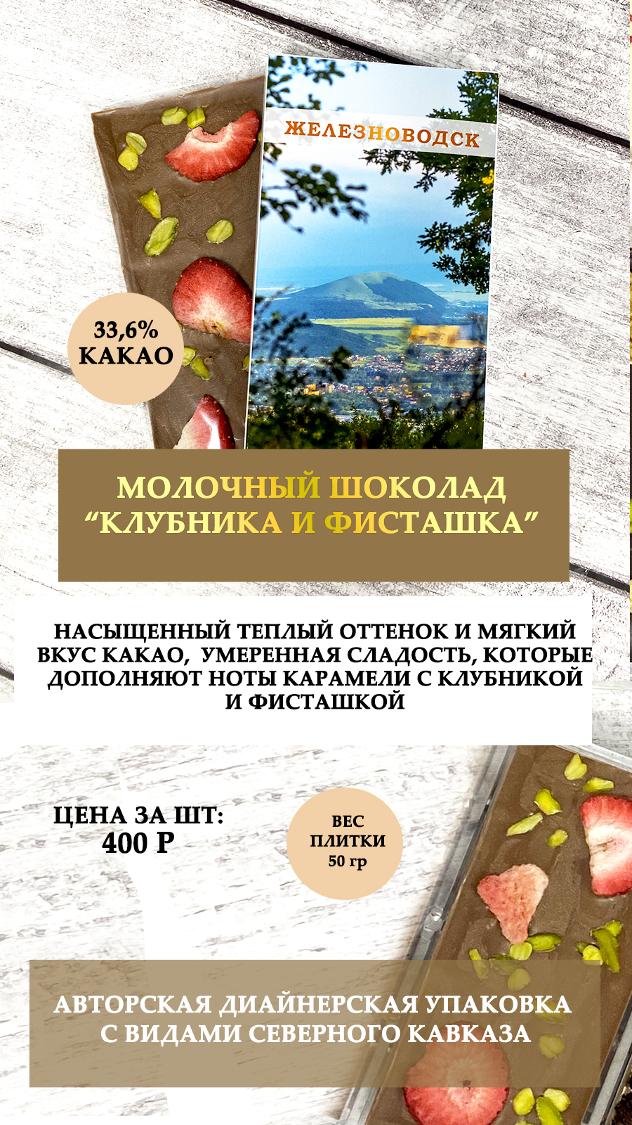 Насыщенный теплый оттенок и мягкий вкус какао, умеренная сладость, которые дополняют ноты карамели с клубникой и фисташкой
