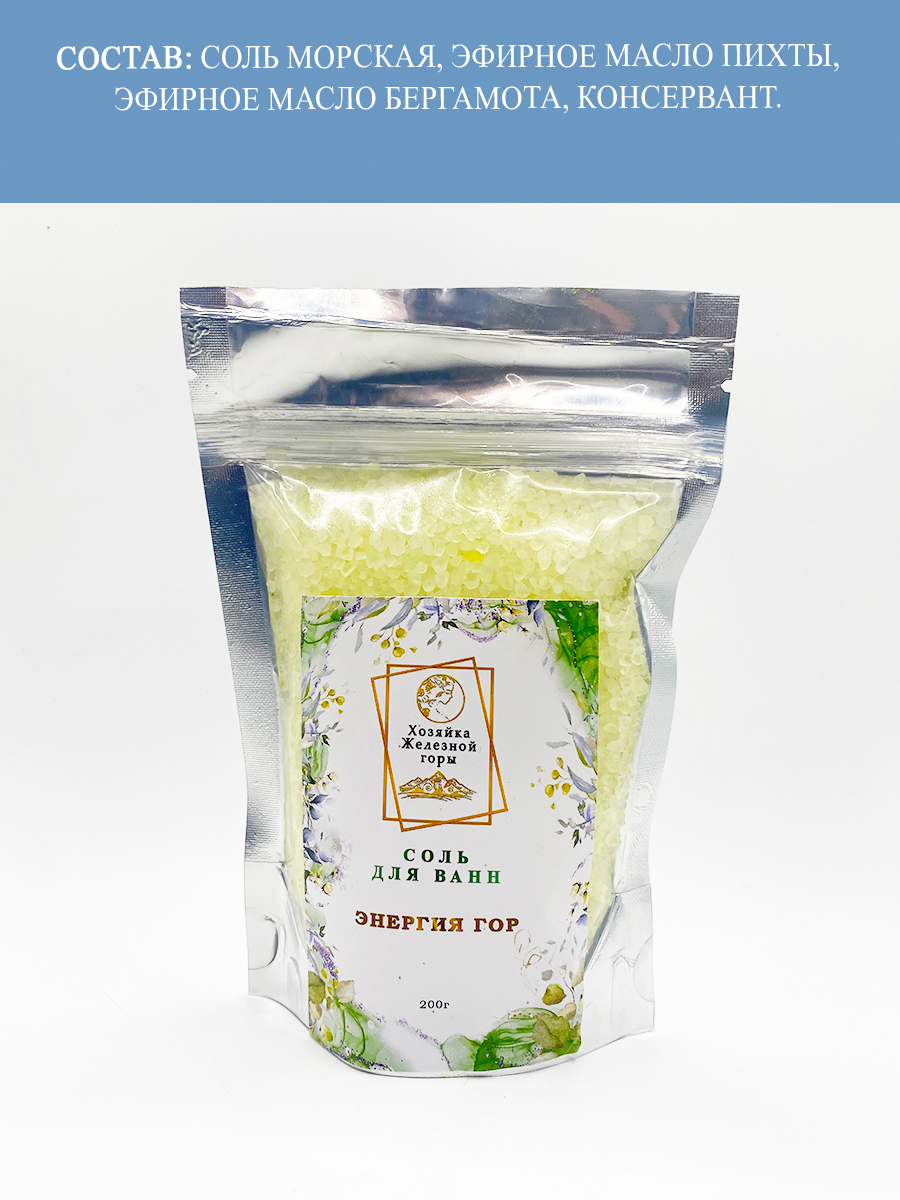 Состав: соль морская, эфирное масло пихты, эфирное масло бергамота, консервант.